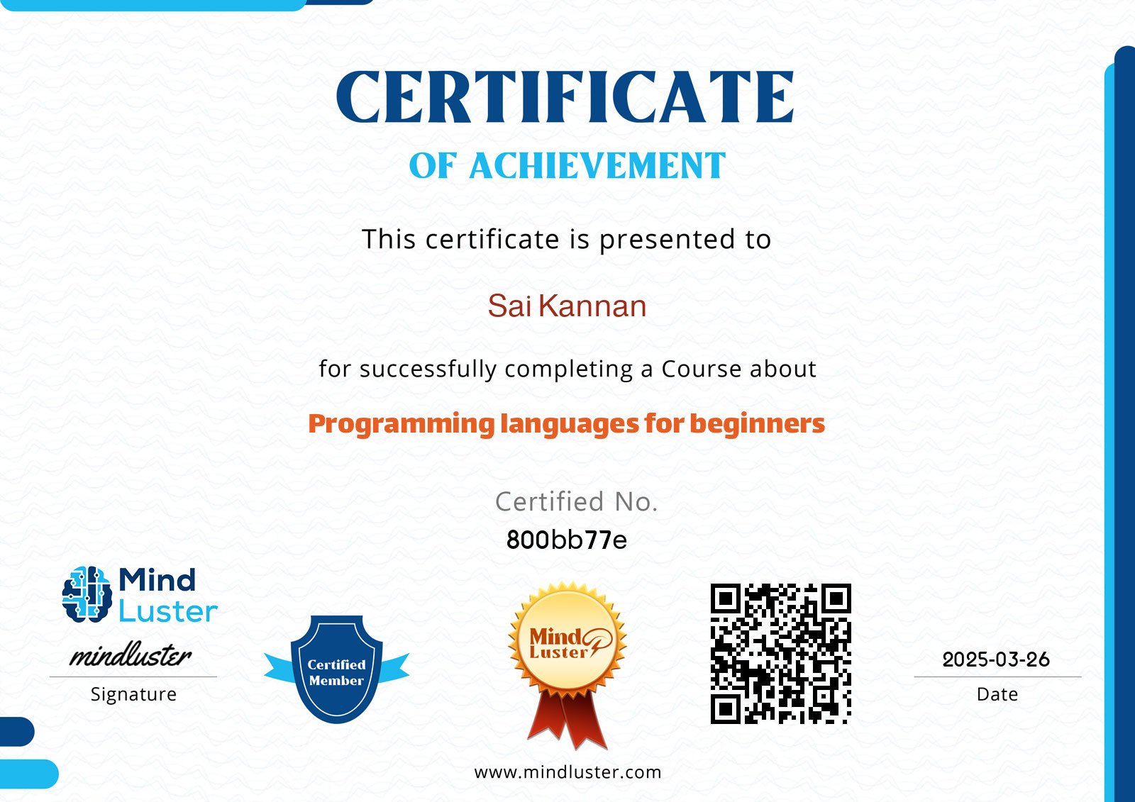 Certificate ID: 800bb77e | Granted: 2025-03-26